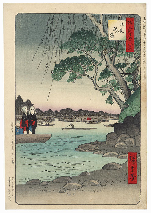 Forty-eight Selected Views of Edo - Not much is known or has been published about this unusual and rare series, "Forty-eight Selected Views of Edo," which features some of the finest designs from Hiroshige's original "One Hundred Views of Edo" series. Published in 1892 by Kodama Matashichi, the series includes striking prints produced with the original blocks, and in some cases, the addition of new blocks. This memorial series includes some of Hiroshige's most memorable images, many of which are now hard to find from the original edition. Beautifully detailed with soft shading and fine line work, prints from the "Selected Views" are a great opportunity to acquire these classic Hiroshige subjects.